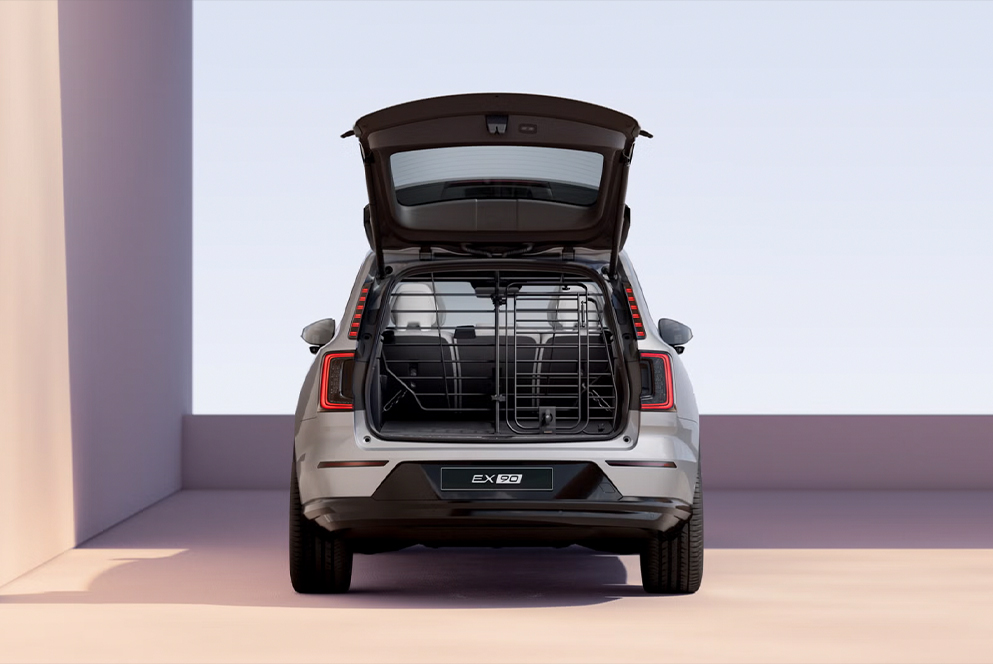 La EX90 offre un avantage rare sur son segment : un volume de coffre généreux. Lorsque les sept sièges sont en place, la EX90 offre jusqu’à 324 litres de capacité de chargement derrière la troisième rangée. Lorsque la troisième rangée est rabattue, le volume de coffre atteint 697 litres, ce qui permet à la EX90 de se démarquer de la plupart de ses concurrents.